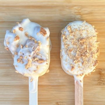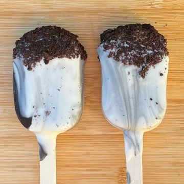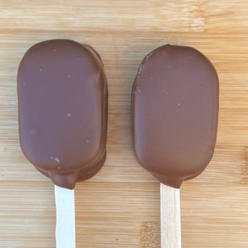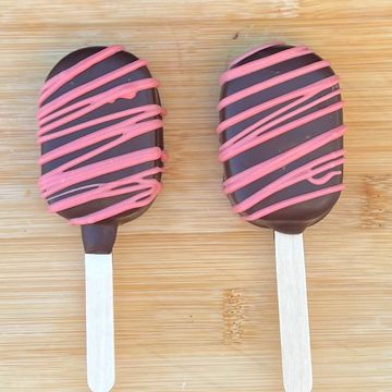 vanilla cake mixed with crushed up oreos and covered in your choice of white or milk chocolate
